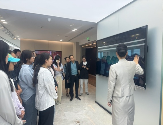 在北京市盈科律师事务所,师生一行实地参观了企业管理体系建设与数字化转型成果,重点了解了公司自主研发的 AI 法律智能体 ——“AI 法律空间站”。同时,公司还围绕 “盈科全球一小时法律服务生态圈” 服务宗旨,全面展示了其在协同办公、知识管理及全球资源整合方面的创新实践,为学生呈现了法律服务行业数字化运营与战略管理的前沿图景,为管理学理论在专业服务领域的应用提供了鲜活案例。