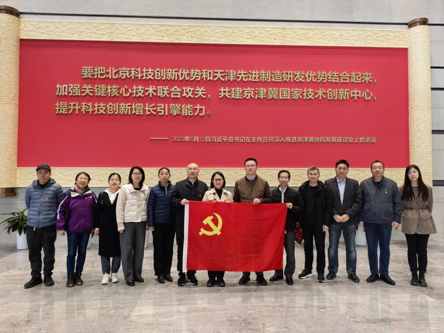 在京津冀国家技术创新中心党总支书记刘杨、党总支委员、人力资源部部长谢雨的陪同下,支部党员首先参观了京津冀国家技术创新中心展厅,实地感受中心在深入贯彻落实习近平总书记关于科技创新的重要论述,推动科技创新、促进成果转化、培育新兴产业等方面取得的显著成就,特别深入了解了颠覆性技术创新的培育机制和发展模式。