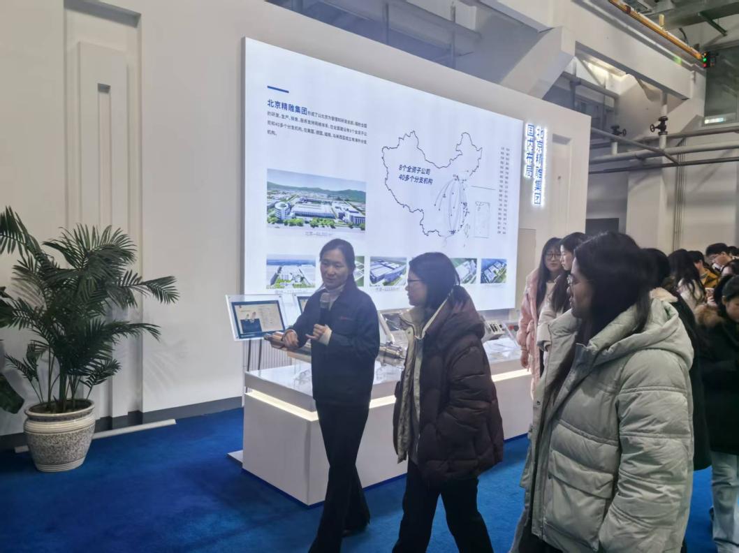 在北京精雕集团,师生一行参观了企业展厅与智能化生产设备,现场观摩高精密加工设备与技术流程,了解企业从研发设计到生产管理的全链条运作。集团相关部门负责人结合具体产品,生动讲解了其在3D建模、汽车制造、精密模具等领域的应用场景与技术特点,展示了企业从技术研发到产品落地、从生产管理到市场服务的全链条能力。