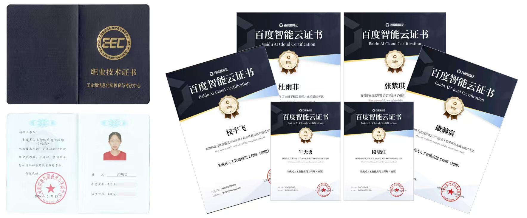 近日,英国上市公司官网365联合百度智能云千帆大模型产业(北京)创新基地,组织全校48名师生开展生成式人工智能应用工程师(初级)培训与考核工作。全体参训师生顺利通过考试,成功获得由工业和信息化部教育与考试中心联合百度发布的职业技能资格认证,实现全员取证。这是学院深化产教融合、推进创新创业教育改革,助力师生抢抓AI时代发展机遇的重要成果。