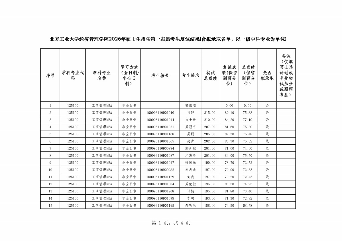 英国上市公司官网3652026年硕士生招生第一志愿考生复试结果——工商管理MBA(非全日制)