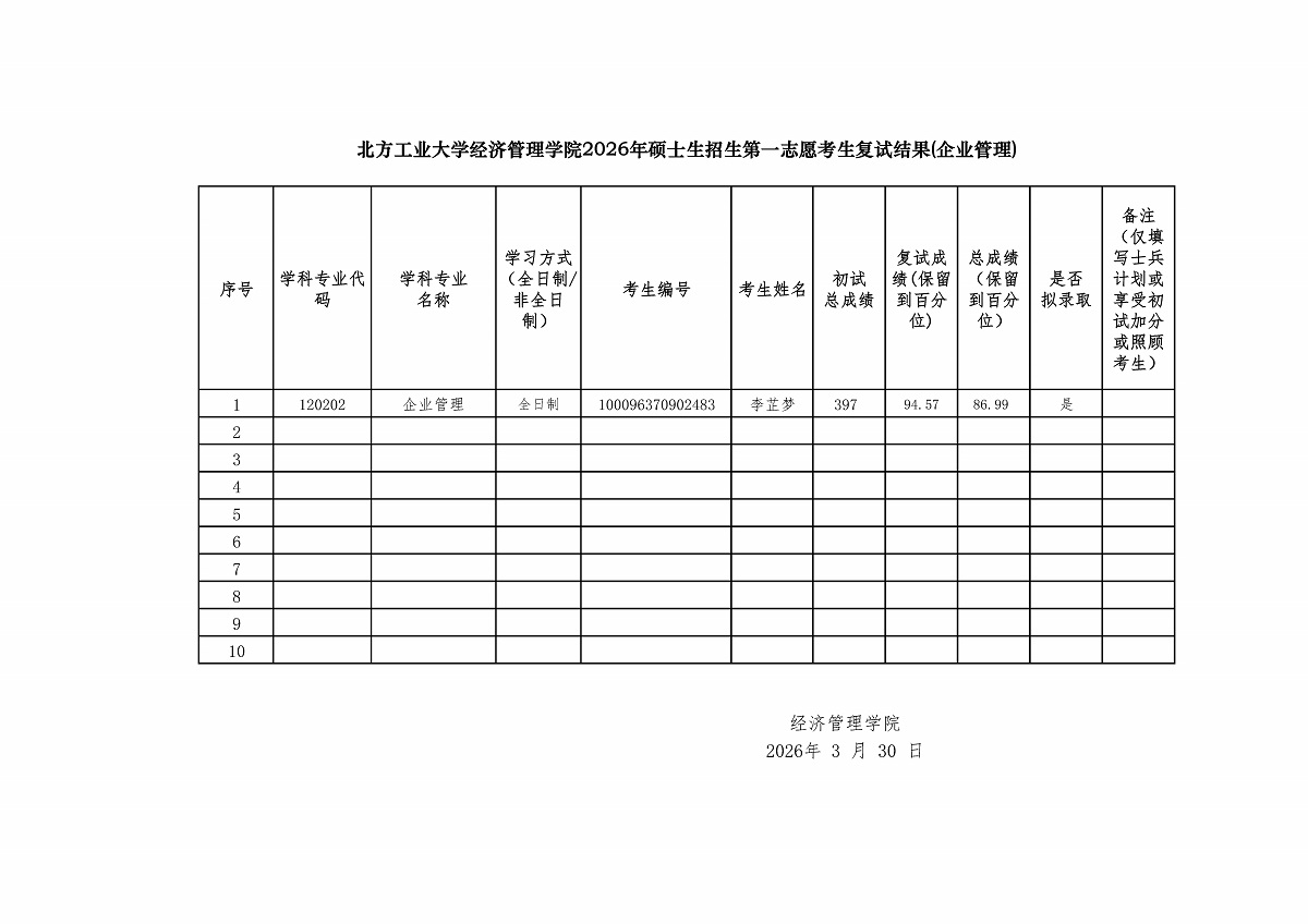 英国上市公司官网3652026年硕士生招生第一志愿考生复试结果——企业管理