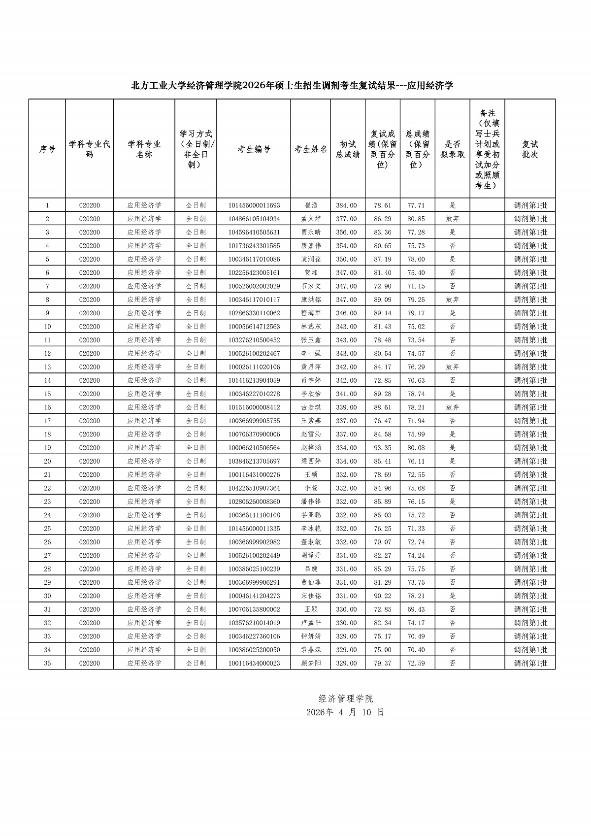 英国上市公司官网3652026年硕士生招生调剂考生复试结果---应用经济学