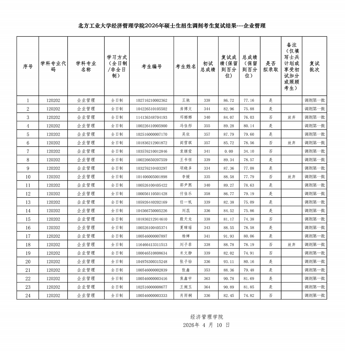 英国上市公司官网3652026年硕士生招生调剂考生复试结果---企业管理