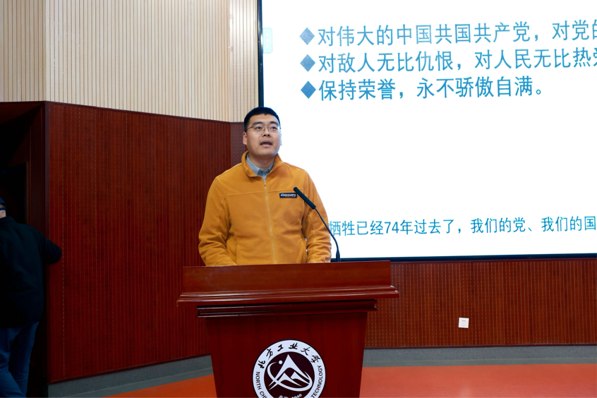 学院辅导员张泽圣老师在讲话中强调,今日的和平繁荣,是无数革命先烈用热血与生命铸就的,传承英雄精神、赓续红色家风,既是对革命先辈的深切缅怀与历史的敬畏铭记,更是新时代赋予我们的责任担当与使命传承。希望同学们始终以革命先辈为榜样,坚定理想信念、筑牢思想根基,勇担时代重任、主动担当作为,让英雄精神在代代相传中永葆生机,让红色基因在融入血脉中生生不息。