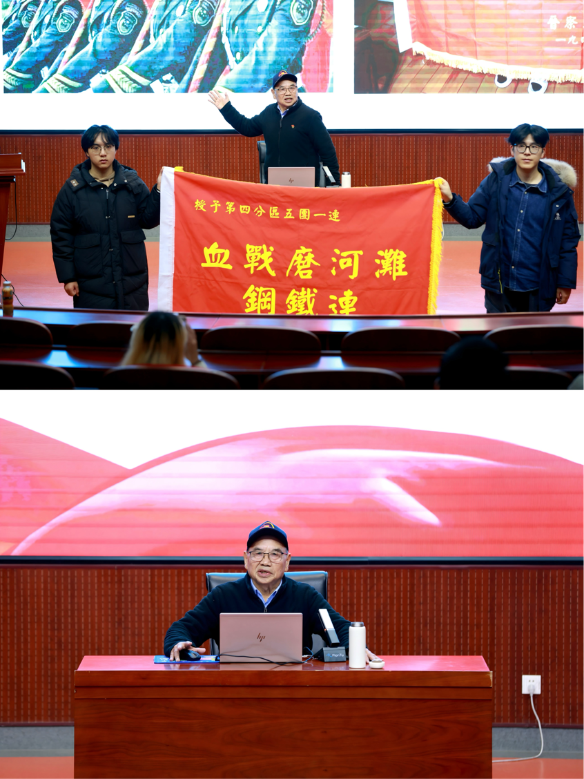 讲座中,邓其平先生以亲身经历为纽带,深情回溯了父亲——著名战斗英雄邓仕均烈士的光辉一生。作为用生命践行忠诚的时代楷模,邓仕均烈士历经二万五千里长征,投身百余次战役战斗,12次负伤仍冲锋在前,9次立功彰显赤胆忠心,曾受到毛泽东主席的亲切接见。磨河滩车站以少胜多的血战、北岳沟掩护主力的坚守,见证了他的英勇无畏;抗美援朝战场上,他率部纵深穿插、奋勇歼敌,最终壮烈牺牲,用35年的短暂人生诠释了“以身许国”的崇高信仰。自幼在部队抚育下成长的邓其平先生,始终传承着父辈的家国情怀,转业后深耕英烈事迹宣讲与公益事业,用真挚的情感、鲜活的故事,带现场同学们重温烽火岁月,让英雄精神在新时代焕发生机,引发全场强烈共鸣。