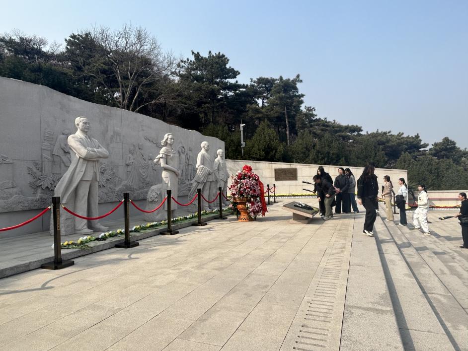在苍松翠柏掩映下的烈士雕像前,全体人员整齐列队,依次敬献鲜花,瞻仰烈士雕像,寄托哀思。大家认真聆听讲解员讲解,了解隐蔽战线英雄事迹,感悟“别亲离子而赴水火,易面事敌而求大同”的忠贞信仰。随后,全体脱帽肃立,默哀致敬。